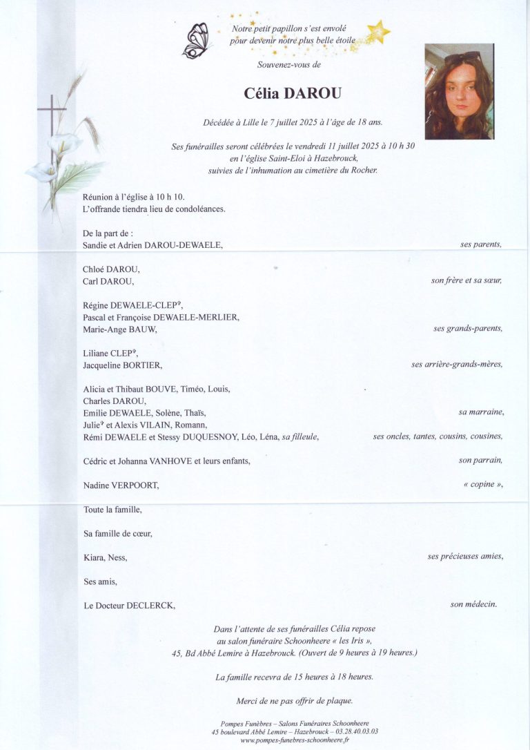 Notre service de condoléances en ligne vous permettra de laisser quelques mots pour la famille, et ce même quelques jours après la cérémonie. Nous vous offrons ainsi la possibilité de prendre le temps de réfléchir et de trouver les mots.
